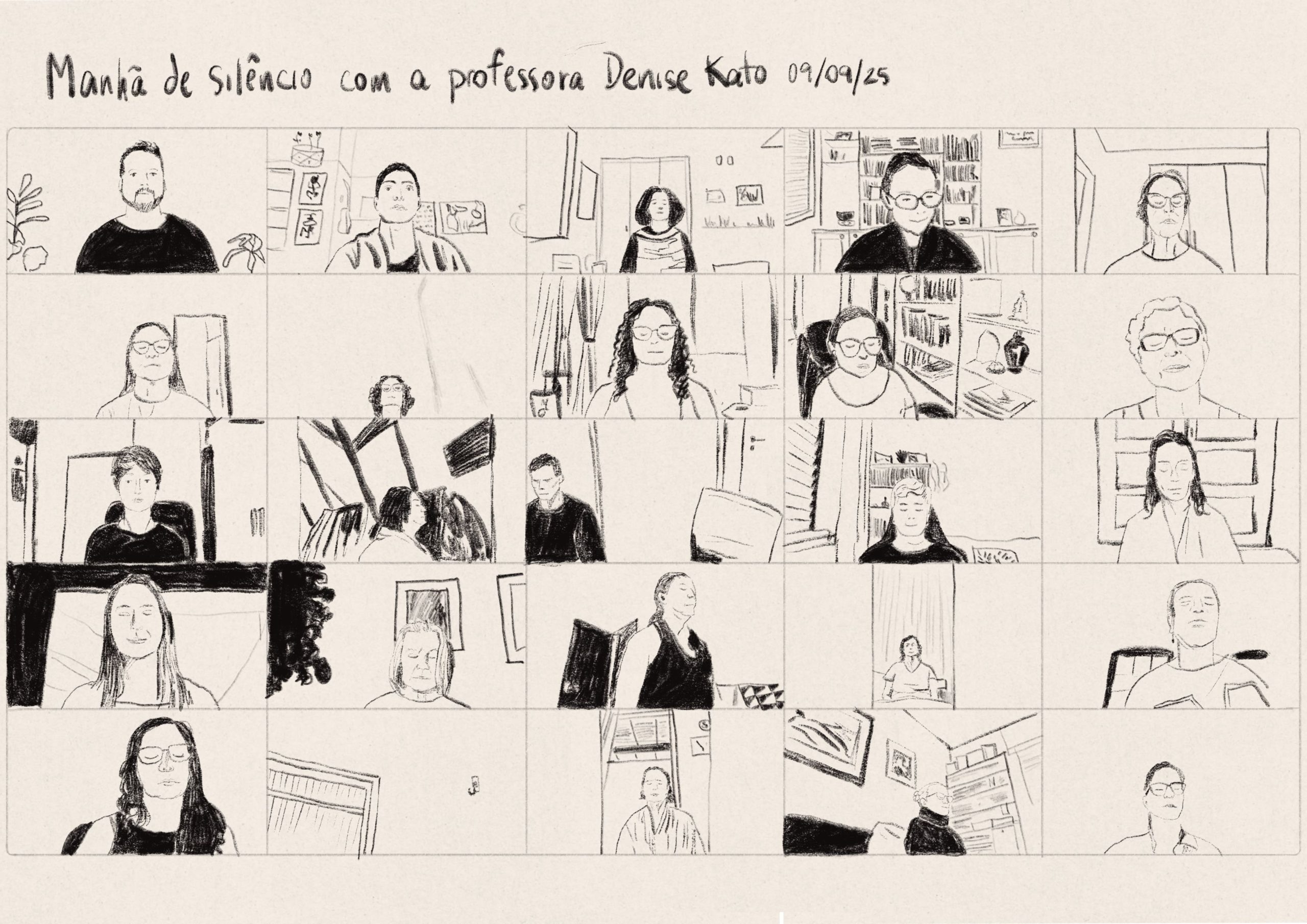 Ilustração de Valentina Fraiz após uma manhã de silêncio especial conduzida pela professora Denise Kato, da tradição de Plum Village